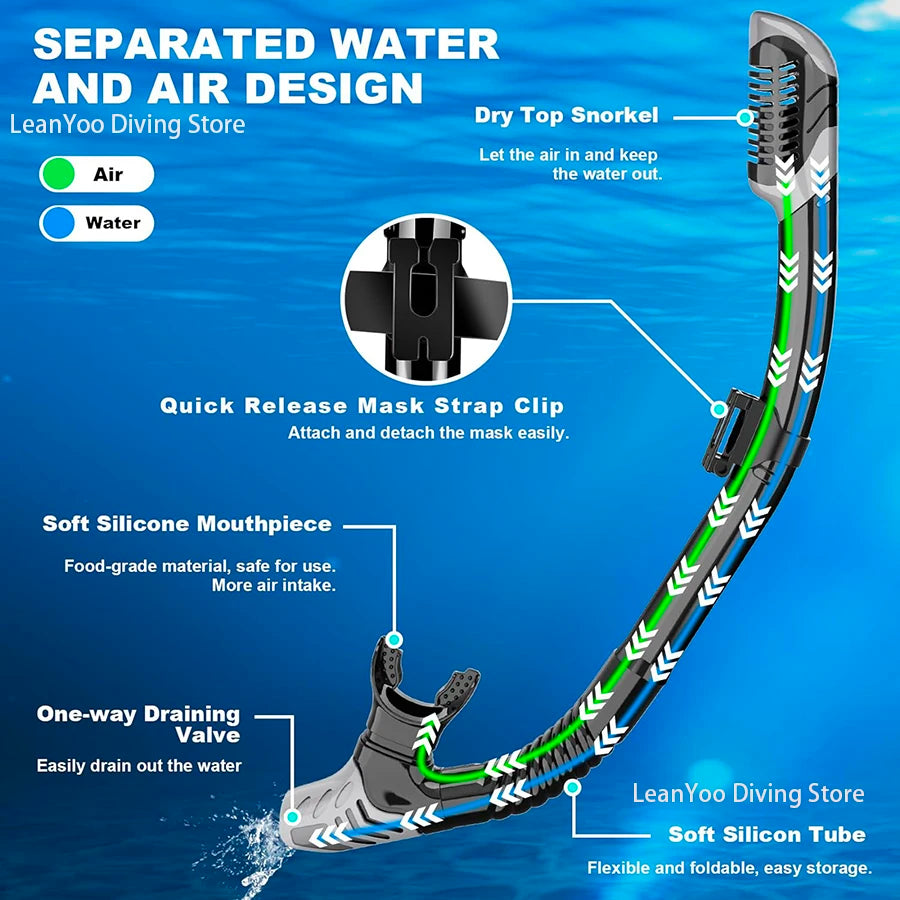 【UV Protected】 The tinted/mirrored lenses dive mask has an innovative mirror coating that reflects red glare under the sunlight, and optimize the contrast of light to increase underwater visibility.